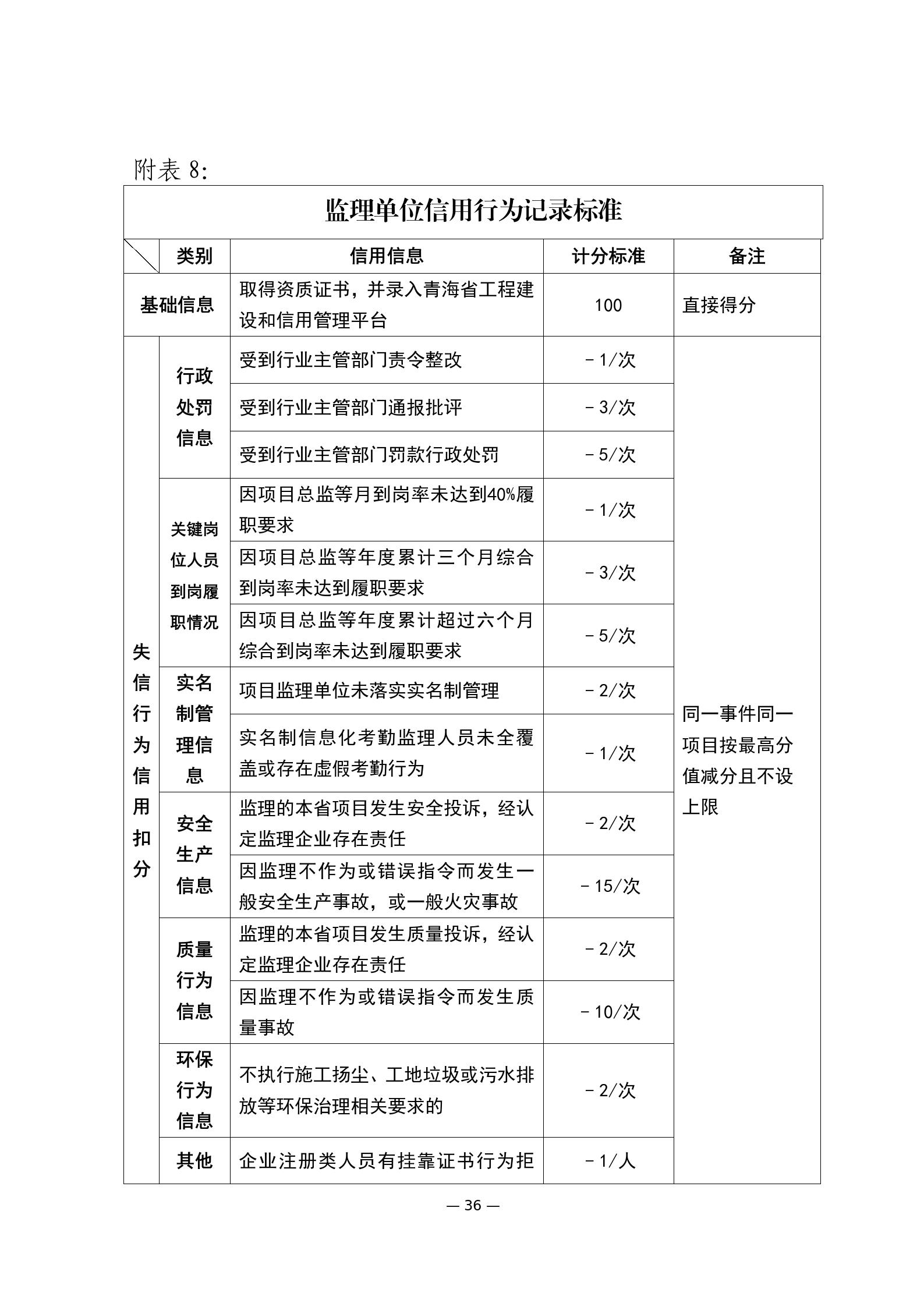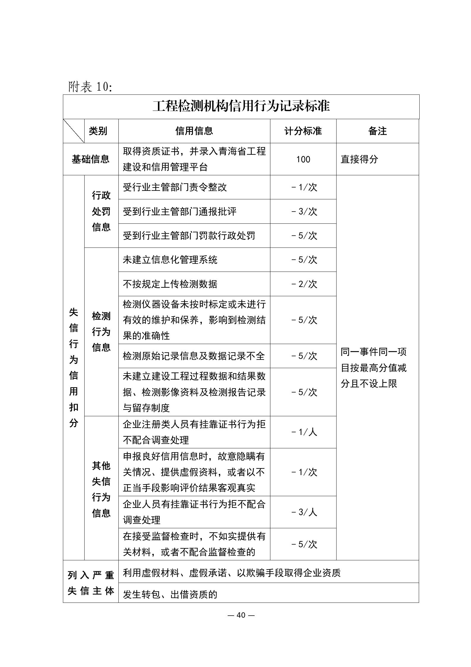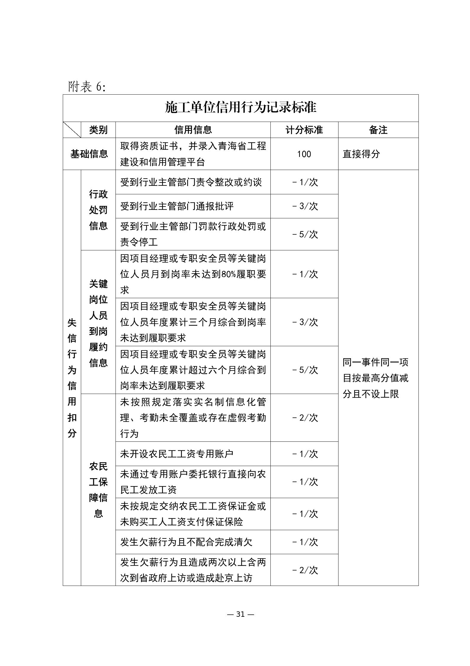 第十六條 建筑市場各方主體和從業(yè)人員的信用評價實行信用記錄、守信獎勵和失信行為動態(tài)記錄記分制。根據(jù)《青海省建筑市場各方主體和從業(yè)人員失信行為記分標準》(附件)進行公開展示和記分。基礎(chǔ)分100分。