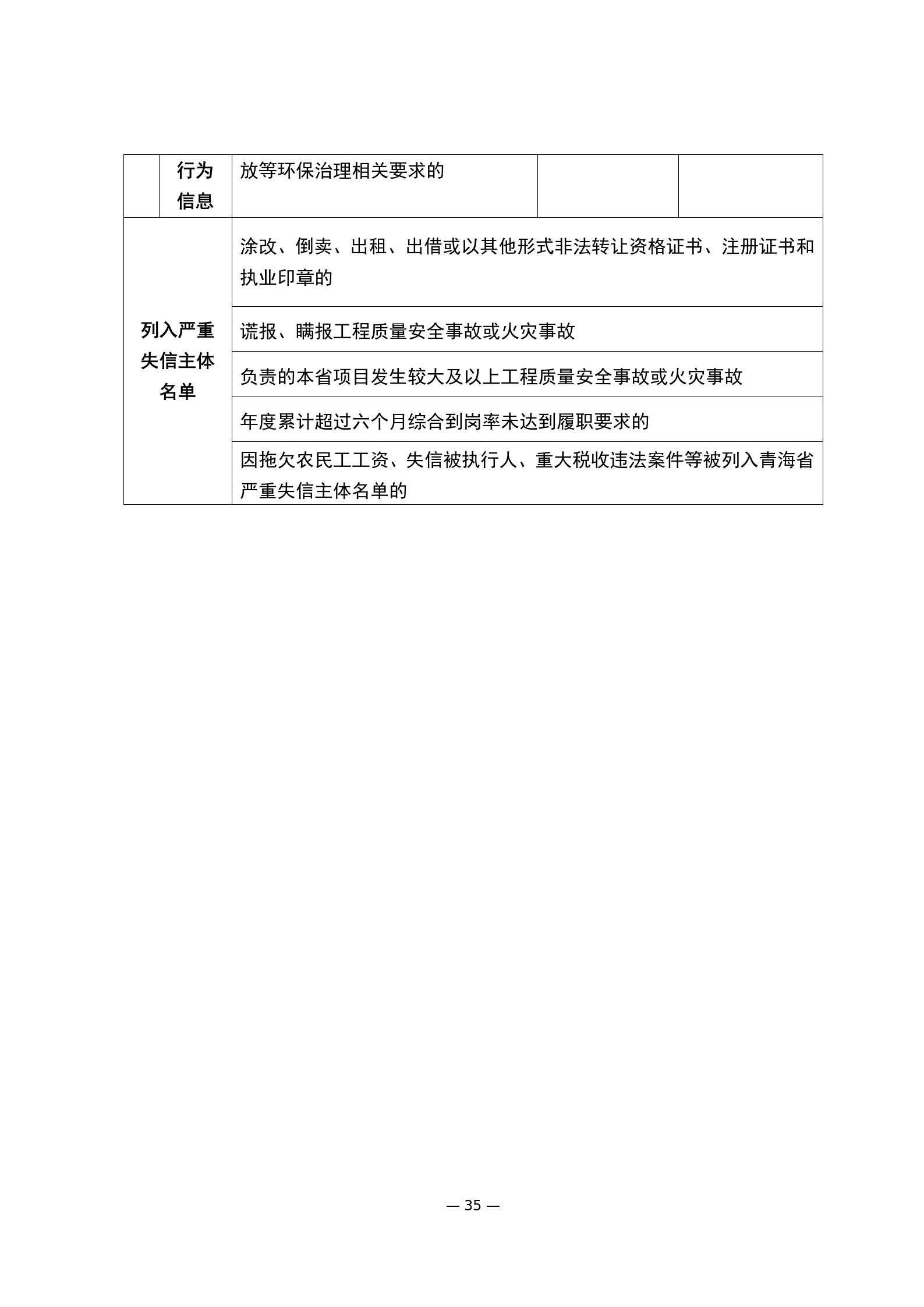 (一)在非國有投資項目中,建設(shè)單位不應(yīng)選用建筑市場主體嚴重失信主體名單的企業(yè)和從業(yè)人員參與工程建設(shè)活動;24個月內(nèi)取消其參與政府投資項目工程建設(shè)活動資格;省外進青企業(yè)24個月內(nèi)不受理進青登記業(yè)務(wù);