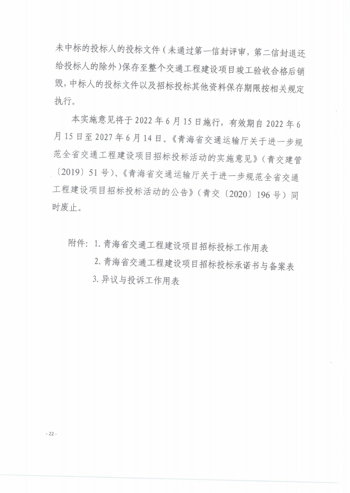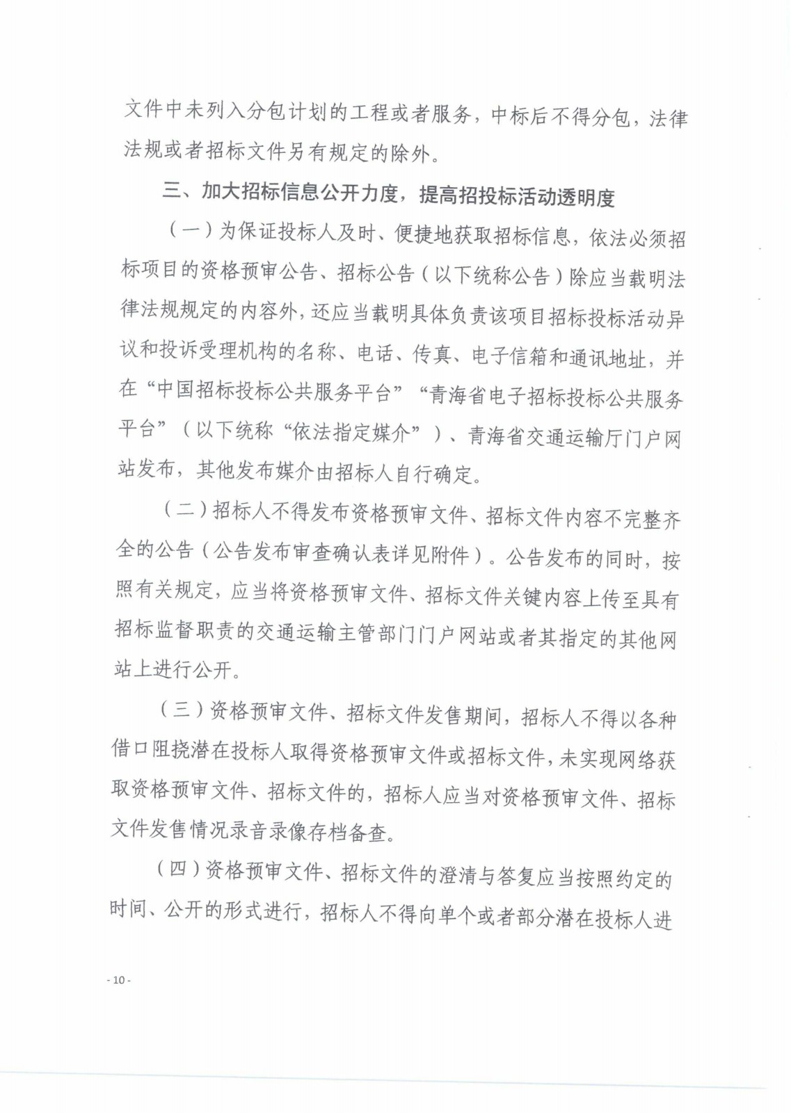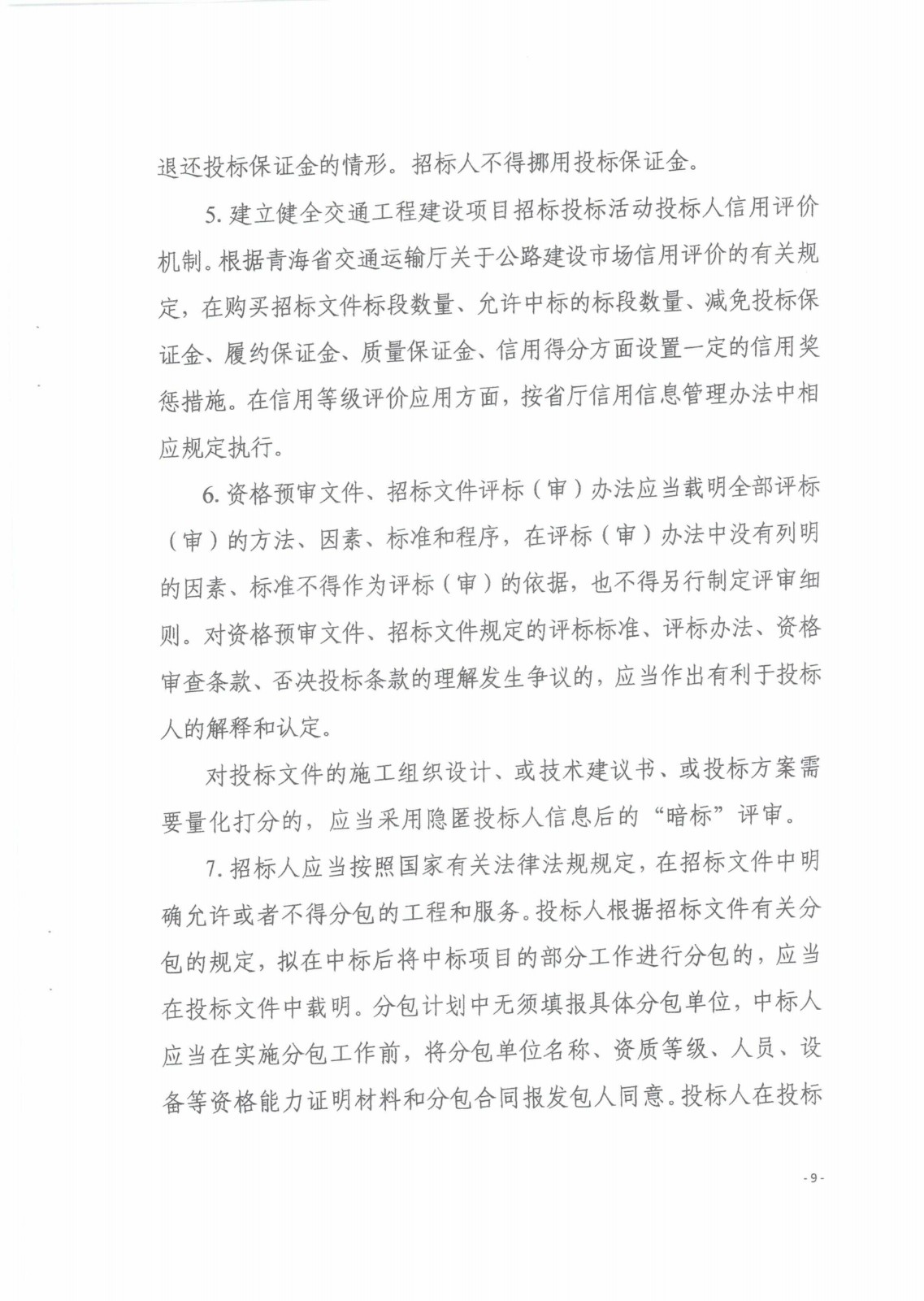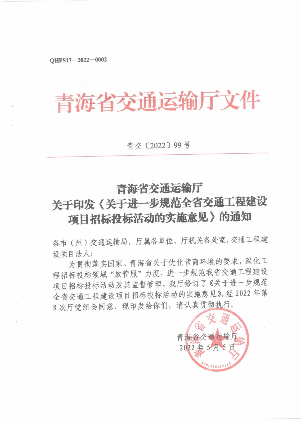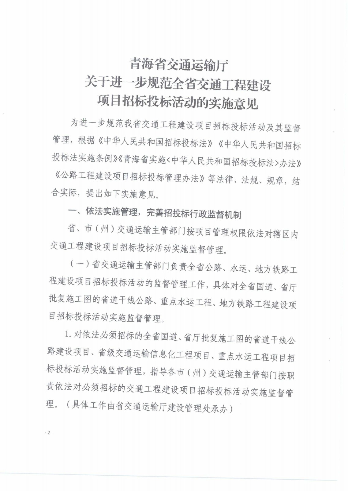 青海省交通運(yùn)輸廳關(guān)于進(jìn)一步規(guī)范全省交通工程建設(shè)項(xiàng)目招標(biāo)投標(biāo)活動的實(shí)施意見