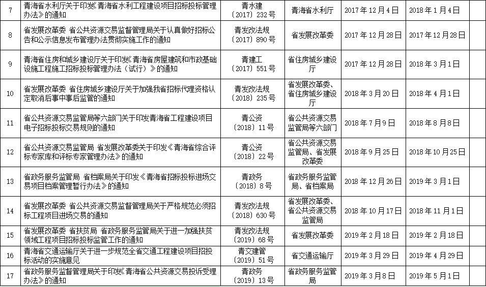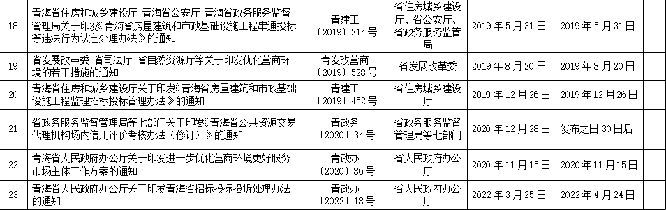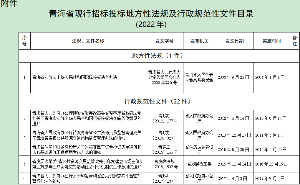 青海省現(xiàn)行招標(biāo)投標(biāo)地方性法規(guī)及行政規(guī)范性文件目錄(2022年)